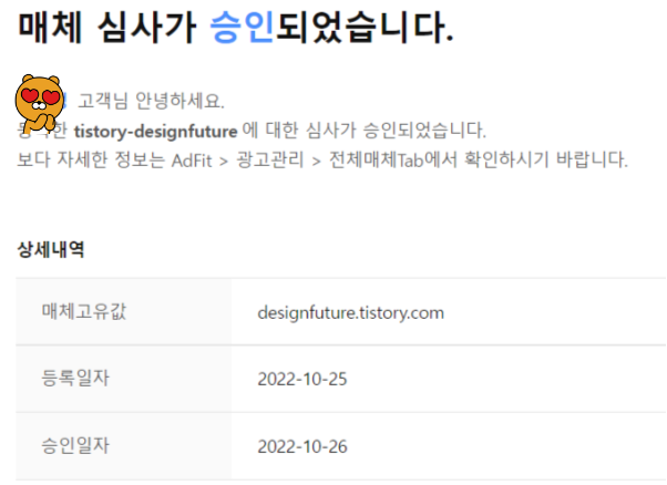 티스토리 이웃님들 포스팅을 보다가 관련 얘기를 듣고 신청해봤는데 아침에 이런 메일을 받았습니다.