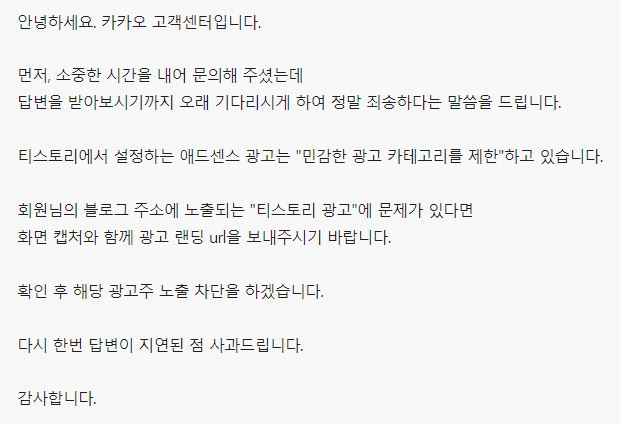 @ 카카오야, 이제 중간광고에 관한 내 문의에 답을 하고 이제 티슷터들 영업 방해 그만해라. 오늘 이 포스팅은 627 카카오 애드센스 광고 정식 항의 포스팅이다.