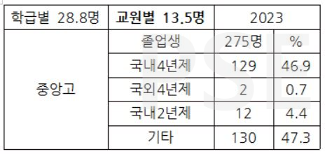 * 중앙고 역시 정원과 졸업생 수가 큰 차이를 보입니다.