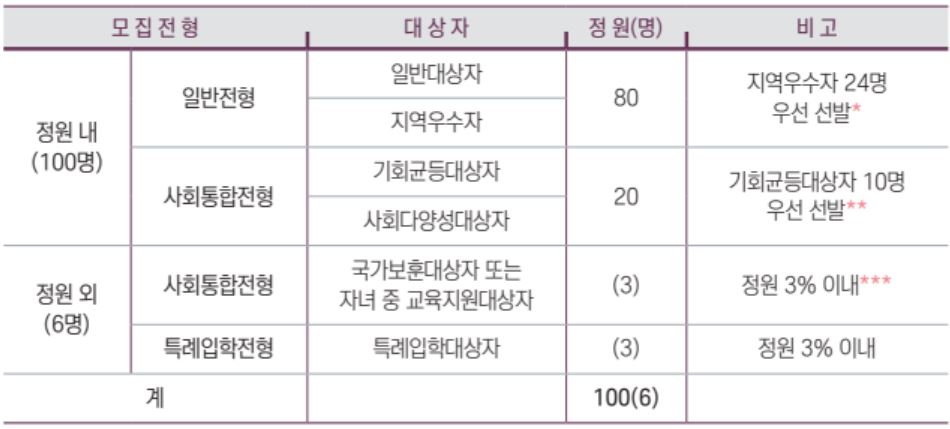 - 위 기준에도 불구하고 동점자가 생길 경우 본교 입학전형위원회의 결정에 따른다.