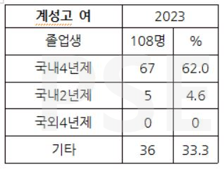 * 대구 계성고 2023 여학생 졸업자 108명 가운데에도 해외 대학 진학자는 없습니다. 계성고가 중국 하얼빈공대와 미국 위스콘신주립대와 특례입학 MOU를 체결했다고 홍보하는 상황과 현실의 차이를 보입니다. 여학생 졸업자 가운데 5명(4.6%)이 전문대를 진학했고 67명이 국내 4년제 대학을 진학하여 62%의 진학률을 보입니다. 여학생 졸업자의 33% 이상이 재수를 하는 상황입니다.