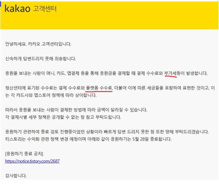 | 카카오는 티스토리는 응원받기 수수료 문제 해결해라! (244) | 2025.04.11 |