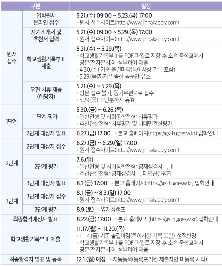 * 중복 지원 문제로 학교별로 조금씩 일정 차이가 있습니다. 감안해서 참고하세요.