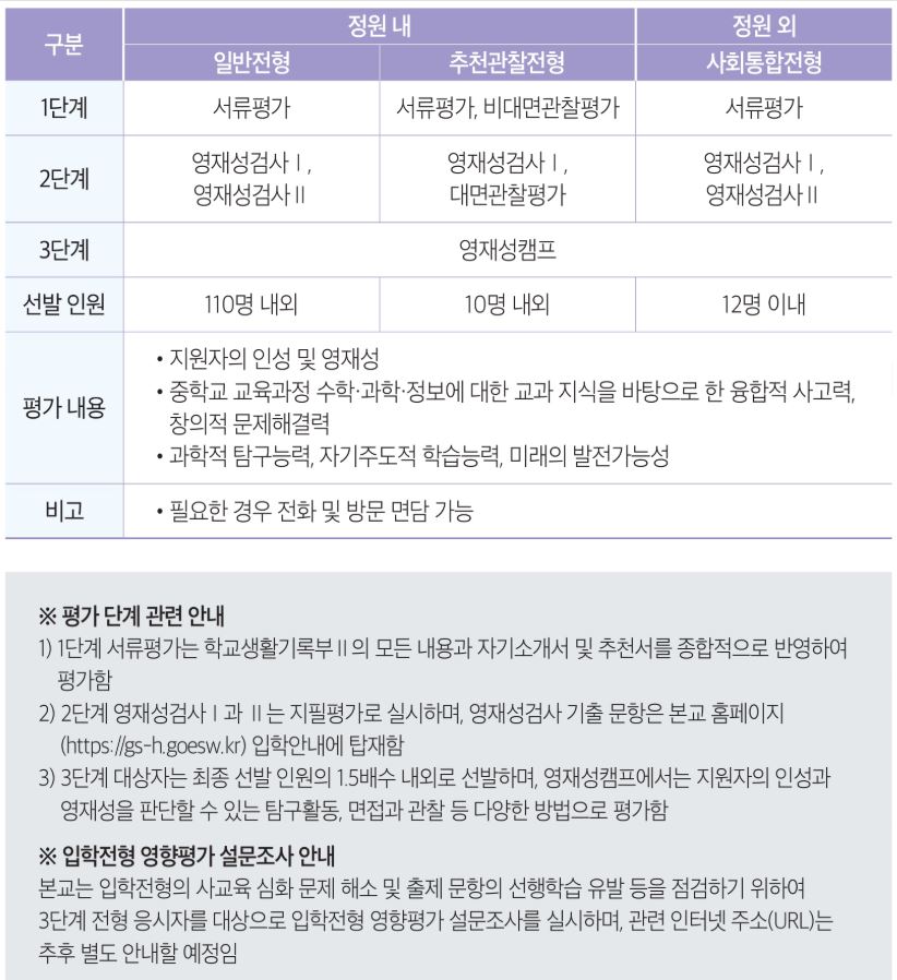 * 영재학교의 경우 학교별 전형 과정이 상이합니다. 그래도 이렇게 대놓고 "영재성 검사"라는 용어를 내세우는 경기과고의 입학 요강은 좀 놀랍습니다.