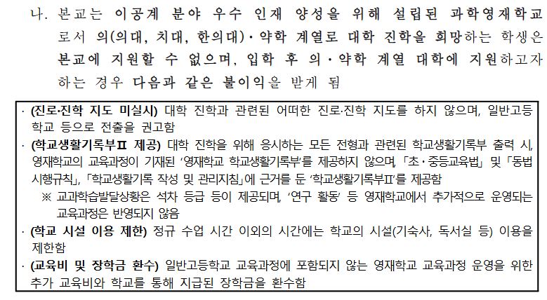 5. 대구과고 의약계열 진학 제재