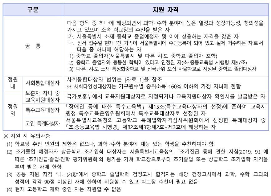 3. 한성과고 지원 자격