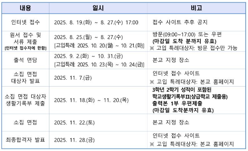 5. 한성과고 2026 입학 전형 일정