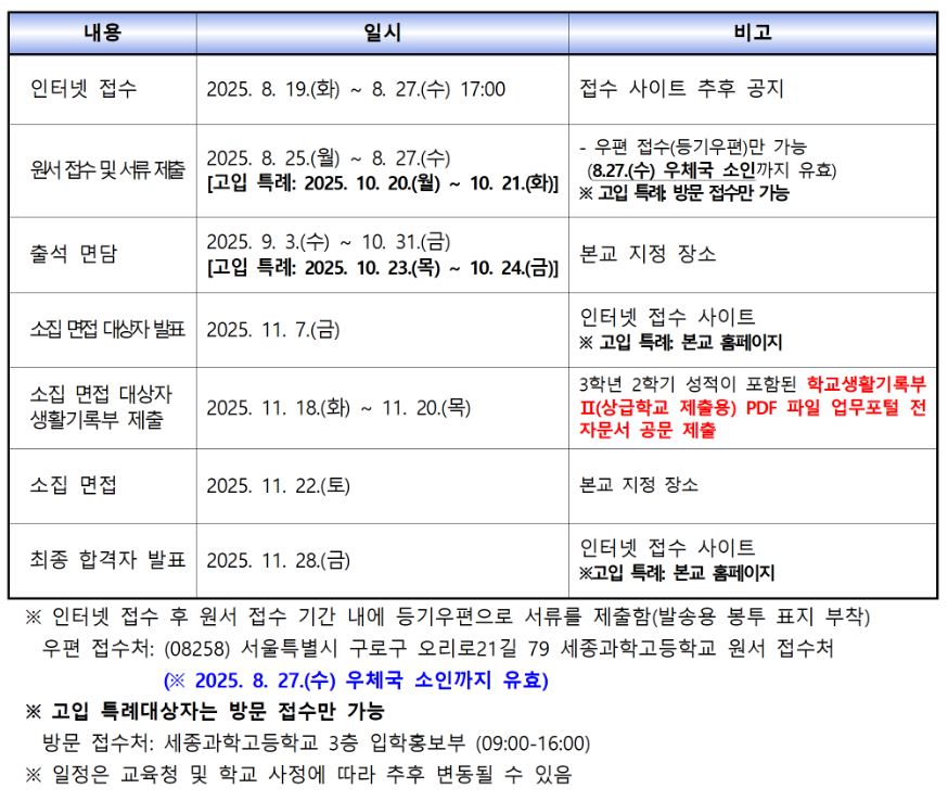 4. 세종과고 2026 신입생 모집 일정