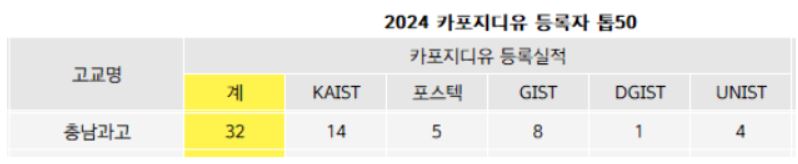 3. 충남과고 2024 이공계특성화대학 진학 현황