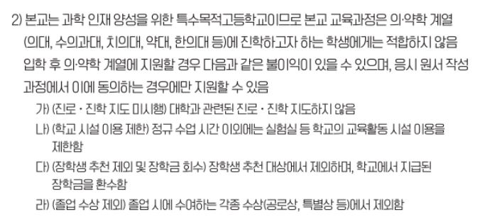* 반복하지만 불이익은 "의약계열" 진학 희망자 때문에 과학 계열 진학 희망자가 받고 있는데, 불이익이라는 단어를 여기에 쓰고 있다는 사실 자체가 지금 이 문제를 오독하고 호도하고 있는 교육부가 해결 능력도 의지도 없다는 현실을 드러낸다고 봅니다. 과고 출신의 의약계열 진학은 불이익과 제재 처리가 아니라, "금지" 조치가 기본이 되어야 합니다.