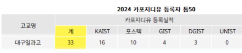 3. 대구일과고 2024 이공계특성화대학 진학 현황