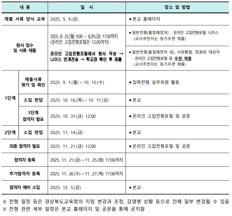 4. 경산과고 신입생 모집 일정