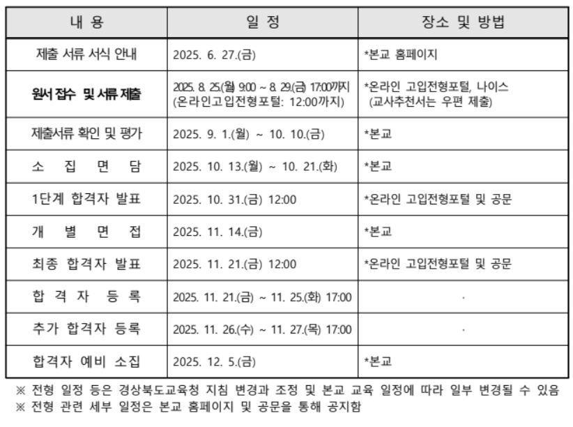 4. 경북과고 2026 신입생 모집 일정