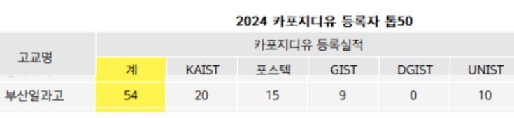 * 부산일과고 2024 국내 4년제 대학 진학자 97명 가운데 5개 이공계특성화대학 등록자는 54명으로 55% 이상의 진학률을 보입니다. 부산일과고 2023 서울대 진학자가 8명인 점을 감안하면 6개 대학 이외 대학 진학자는 30% 이상일 것으로 추정 가능합니다. 여타 대학 진학자가 의약계열 진학이 아니기를 바랍니다.
