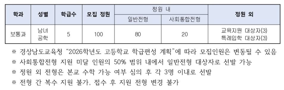 2. 경남과고 신입생 모집 인원