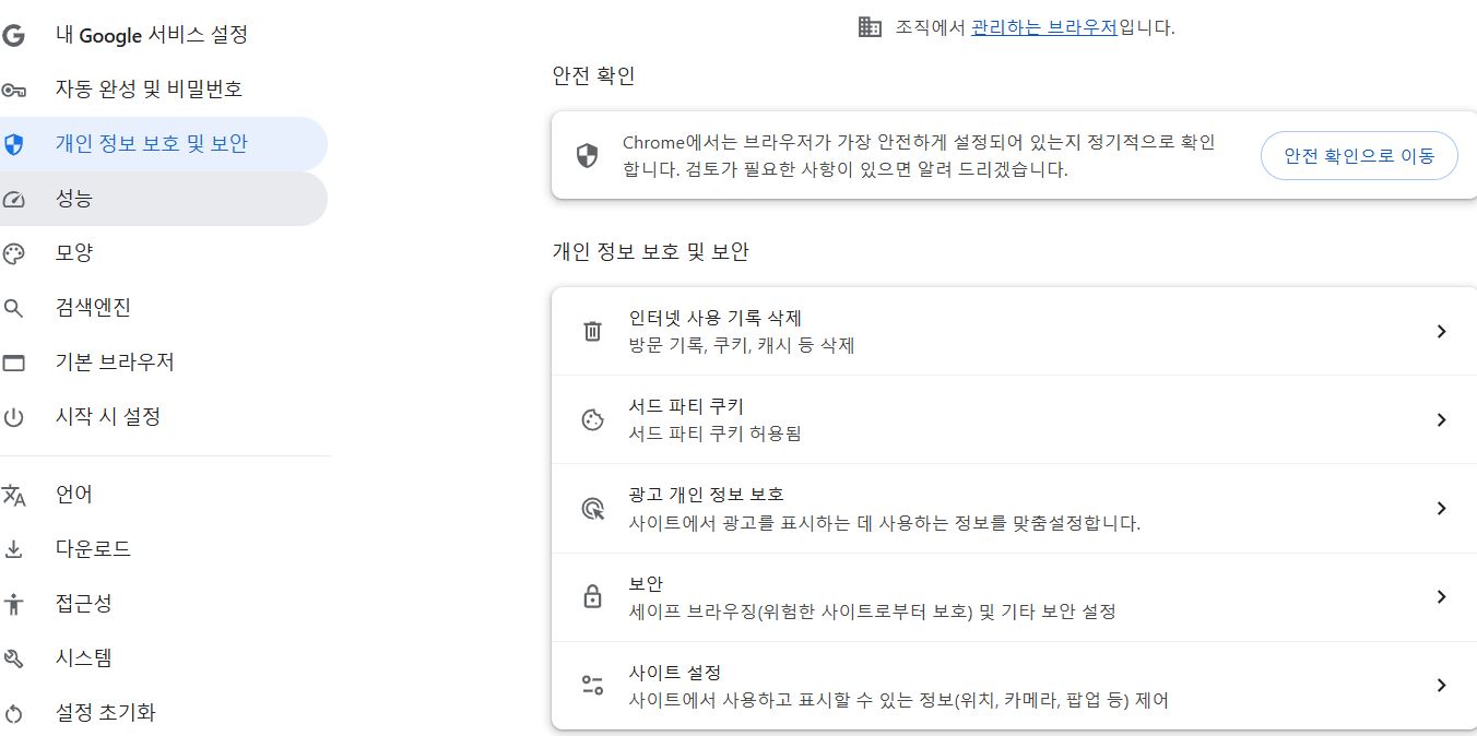 * 설정 > 왼쪽 개인정보보호 및 보안 클릭 > 광고개인정보보호 클릭
