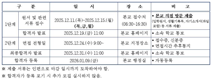 5. 제주외고 신입생 모집 일정