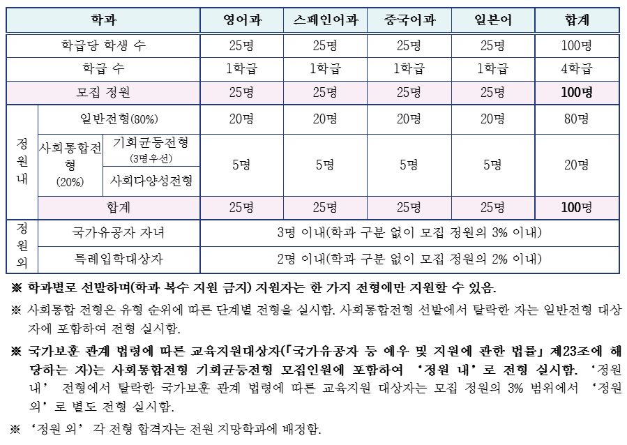 * 제주외고의 경우 아직 4개 전공어별 모집 방식을 유지하고 있다는 점이 눈길을 끕니다. 영중일 이외에 스페인어과도 유지되고 있다는 점도 유의할 만합니다.