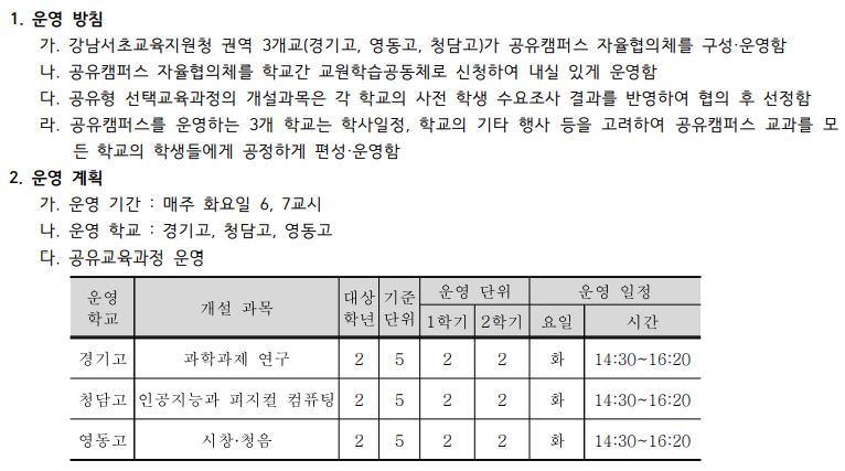 7. 경기고 공유캠퍼스 학교별 개설 프로그램