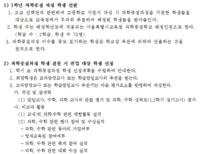 과학중점 과정에 대한 소개 또는 안내는 일절 홈페이지에 드러나지 않는데 모집 공고만 이렇게 공개됩니다. 올릴 정보가 없어서 이거라도 올립니다.